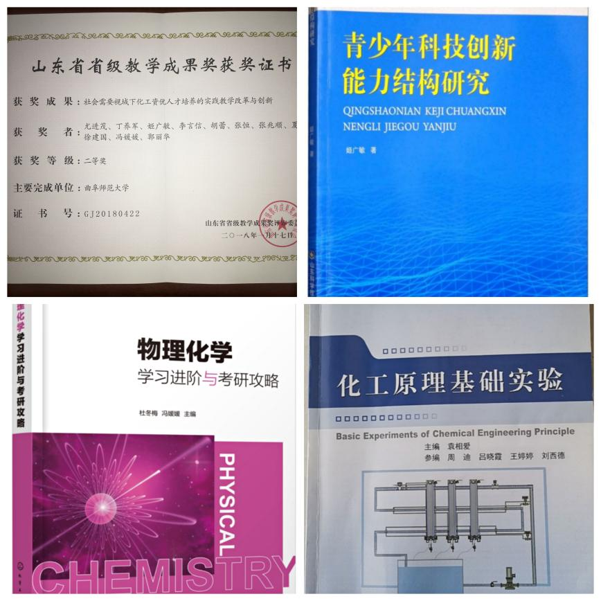 学院重视教师教学能力培养,鼓励教师进行教学改革研究。2018年获山东省省级教学成果二等奖1项;2022年获山东省教学改革重点项目1项。近五年来获山东省青年教师教学比赛一等奖1项,二等奖2项,三等奖2项;《物理化学》等四门课程入选省级一流本科课程;出版教学用书4部。