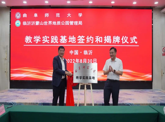 陈刚与主玉共同为米兰官方网站沂蒙山世界地质公园教学实践基地揭牌。