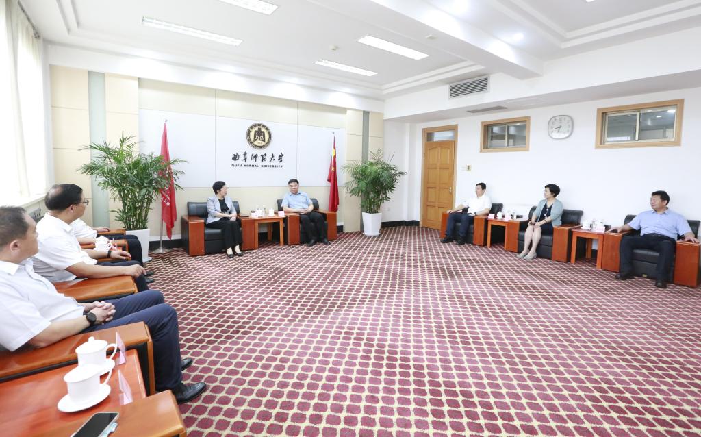 曲阜师大新闻中心讯(记者:孙琪) 7月14日上午,曲阜市委书记李丽一行到曲阜师大调研,米兰官方网站党委书记邢光、校长张洪海、党委副书记李志红、副校长纪洪涛会见来宾并举行座谈。