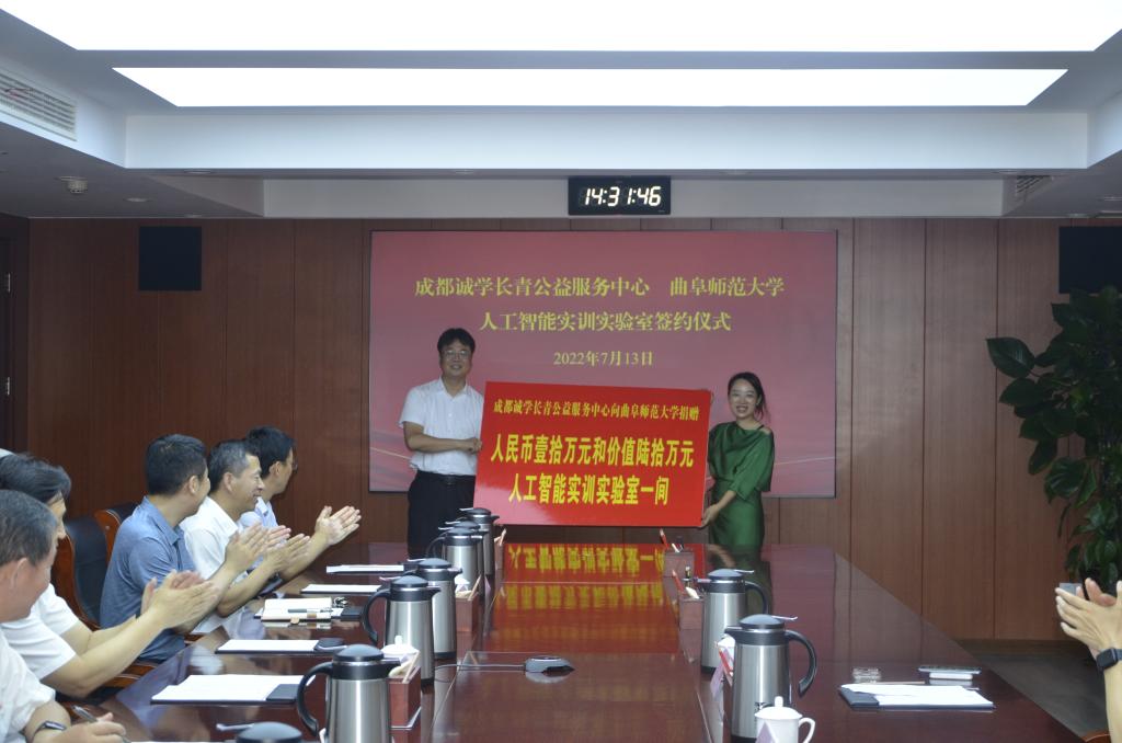 曲阜师大新闻中心讯 7月13日下午,成都诚学长青公益服务中心向米兰官方网站捐赠“人工智能实训实验室”仪式在曲阜校区举行。米兰官方网站校长张洪海、副校长刘刚出席仪式。