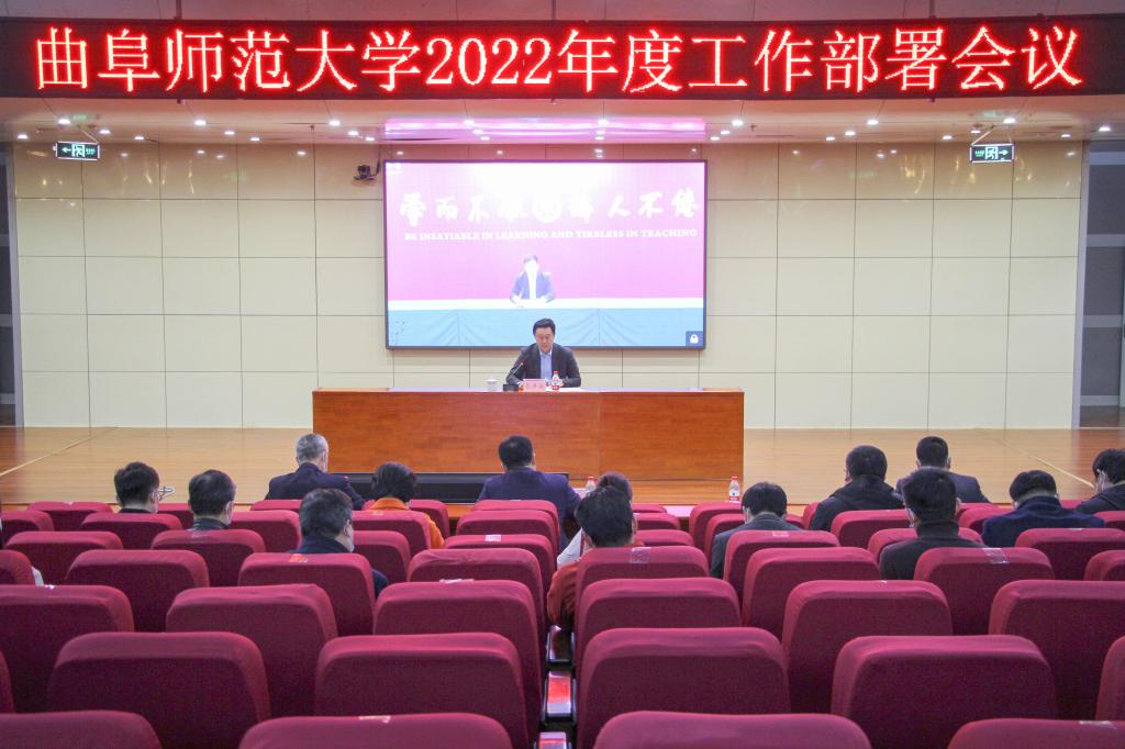 曲阜师大新闻中心讯(记者:李文振 摄影:李文振 尹哲睿) 3月2日下午,曲阜师大召开2022年工作部署会暨干部作风建设启动会,学校党委书记戚万学主持会议并作总结讲话,校长张洪海在会上部署了学校2022年度主要工作。学校党委领导班子全体成员,各党委(党总支)书记、各学院院长、各部门单位主要负责人,参加会议。