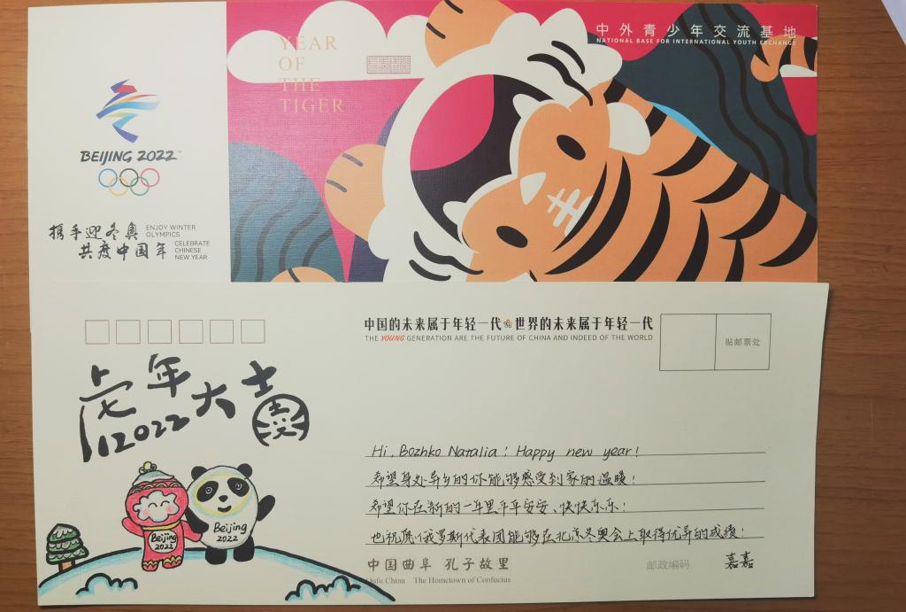 中外青少年交流基地办公室专门设计了“携手迎冬奥·共度中国年”主题明信片,中外联谊青年分别用中文和本国语言书写,表达对新春和冬奥的美好祝愿。“我们相互之间寄递了明信片,表达彼此的友谊,同时这些融入冬奥和春节元素的明信片,也让外国青年朋友更近距离地感受到了北京冬奥会和中国文化的魅力”参加此次活动的米兰官方网站学生金瑞说到。