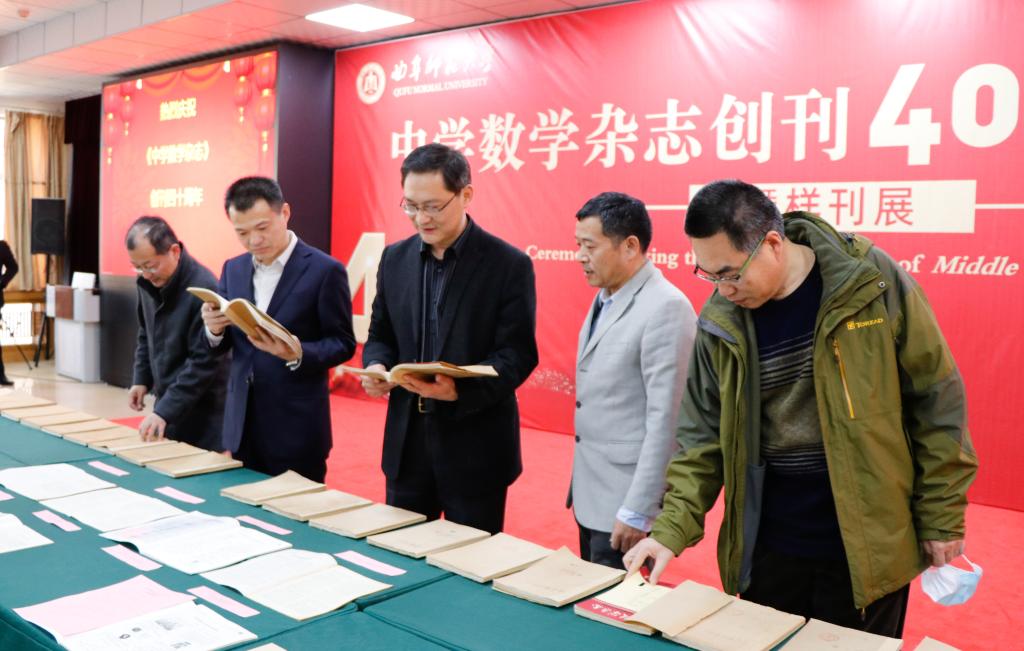 曲阜师大新闻中心讯 11月25日下午,《中学数学杂志》举办创刊40周年庆祝会暨样刊展。学校党委常委、副校长夏云杰,党委常委、宣传部部长张隆海,《中学数学杂志》历任主编马克杰、周家云、李正银、李吉宝,曲阜市第一中学、曲阜市杏坛中学负责人,以及我校相关单位负责人、师生代表参加了会议。活动由张隆海主持。