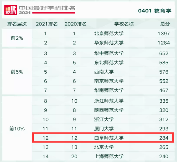 2021软科中国最好学科排名公布:曲阜师大16个学科上榜,14个学科进百强