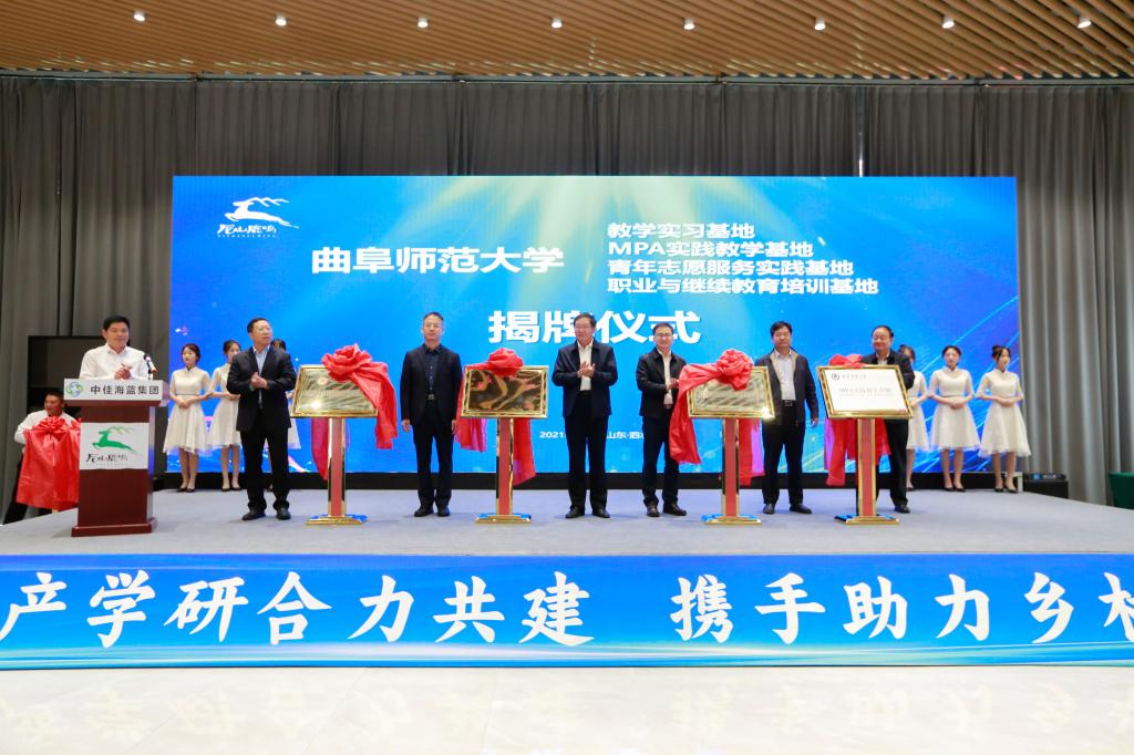 我校政治与公共管理学院党委书记卢瑞霞与侯晓晨共同签署合作协议;我校政治与公共管理学院副院长李增元与刘庆恩为“泰山学者李增元工作站”揭牌;我校国内合作处处长孔宪福、团委书记孔轶众、继续教育学院院长范兆东、政治与公共管理学院博士生导师王维先,泗水县组织部副部长、人社局局长李庆泉,农业农村局局长夏理华共同为米兰官方网站“青年志愿服务实践基地”“职业与继续教育培训基地”“教学实习基地”“MPA实践教学基地”揭牌。