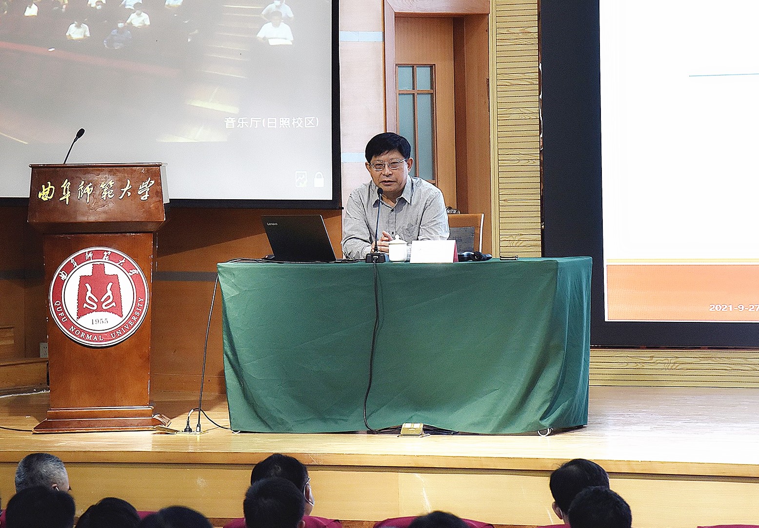 曲阜师大新闻中心讯(通讯员:白延宁  摄影:孙琪 尹哲睿)  9月27日上午,学校新提任处级干部履职能力提升专题培训班开班。培训班特邀原山东省政协常委、港澳台侨和外事委员会副主任,山东鲁商联盟会专家咨询委员会主任,原山东省政府驻上海办事处主任李斌来校做专题报告。学校领导、全体在职处级干部参加了开班仪式。仪式由党委书记戚万学主持。