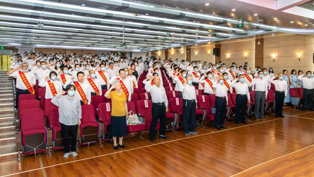 大会在全体奏唱国歌声中拉开帷幕。“我志愿加入中国共产党,拥护党的纲领,遵守党的章程……为共产主义奋斗终身,随时准备为党和人民牺牲一切,永不叛党!”在党委书记戚万学同志的领誓下,全体党员面对鲜红的党旗庄严宣誓,用铮铮誓言见证初心、砥砺前行。