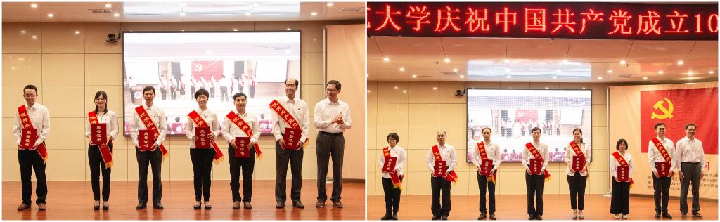 戚万学在讲话中首先代表学校党委,向全校各级党组织和全体党员,表示节日的祝贺和诚挚的问候!向所有荣获“光荣在党50年”纪念章的老党员同志们,向受到表彰的先进党组织和优秀个人,表示热烈的祝贺并致以崇高的敬意!戚万学指出,100年来,一代代中国共产党人,以力挽狂澜的担当和气魄,用鲜血和生命挺起了中华民族脊梁,建立了彪炳史册的不朽功勋,创造了一个又一个“中国奇迹”。党的十八大以来,以习近平同志为核心的党中央团结带领人民,开创了党和国家事业发展新局面,开启了实现“两个一百年”奋斗目标和中华民族伟大复兴中国梦的新征程。回望百年党史,我们深切感受到:没有共产党,就没有新中国;没有共产党的领导,就没有中华民族的伟大复兴。我们必须从百年党史中汲取信仰之力、信念之魂、信心之光,为实现中华民族伟大复兴的中国梦而不懈奋斗。