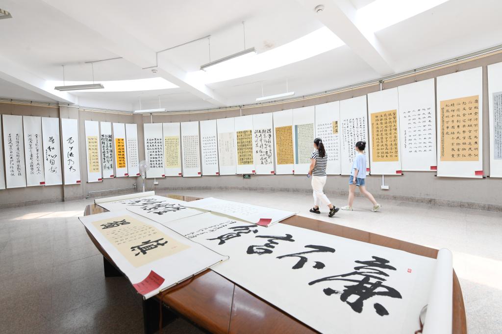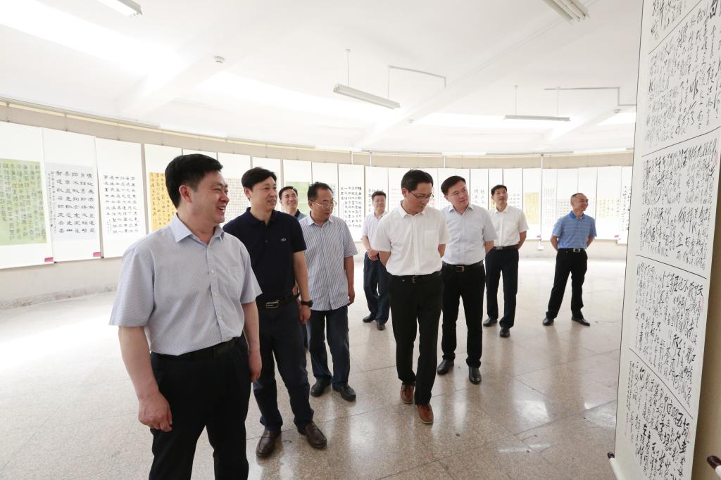 曲阜师大新闻中心讯(通讯员:杨兴防  摄影:董少伟 刘萌)百年芳华养正气,翰墨初心树清风。6月28日上午,学校纪委、监察专员办公室组织的庆祝建党100周年“清风曲园”廉文化作品展览在书法学院展厅开展。党委书记戚万学,党委副书记、校长张洪海,党委领导班子成员以及部分单位同志一起莅临现场参观展览。