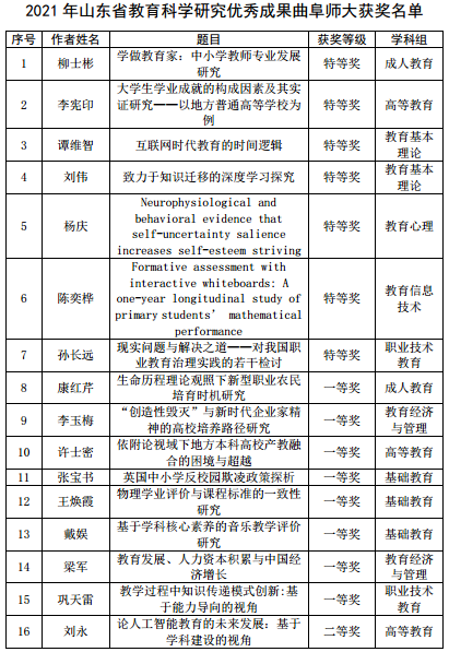获奖总数位居省属高校第一——曲阜师大斩获16项2021年山东省教育科学研究优秀成果奖