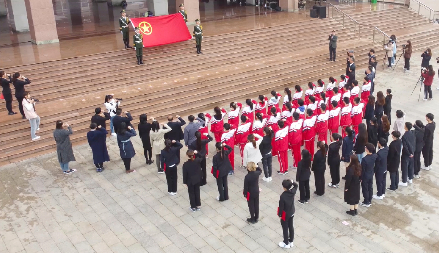 曲阜师大新闻中心讯 在中国共产党成立百年之际,在五四青年节即将到来之时,由校团委主办的“青春心向党”国旗下的承诺主题活动于4月27日在两个校区共同举行。学校团委、附属实验学校等单位负责人,曲师附校团干部与2020级全体团员、曲阜师大和曲师附校2020年发展的72名新团员代表共同参与了本次活动。