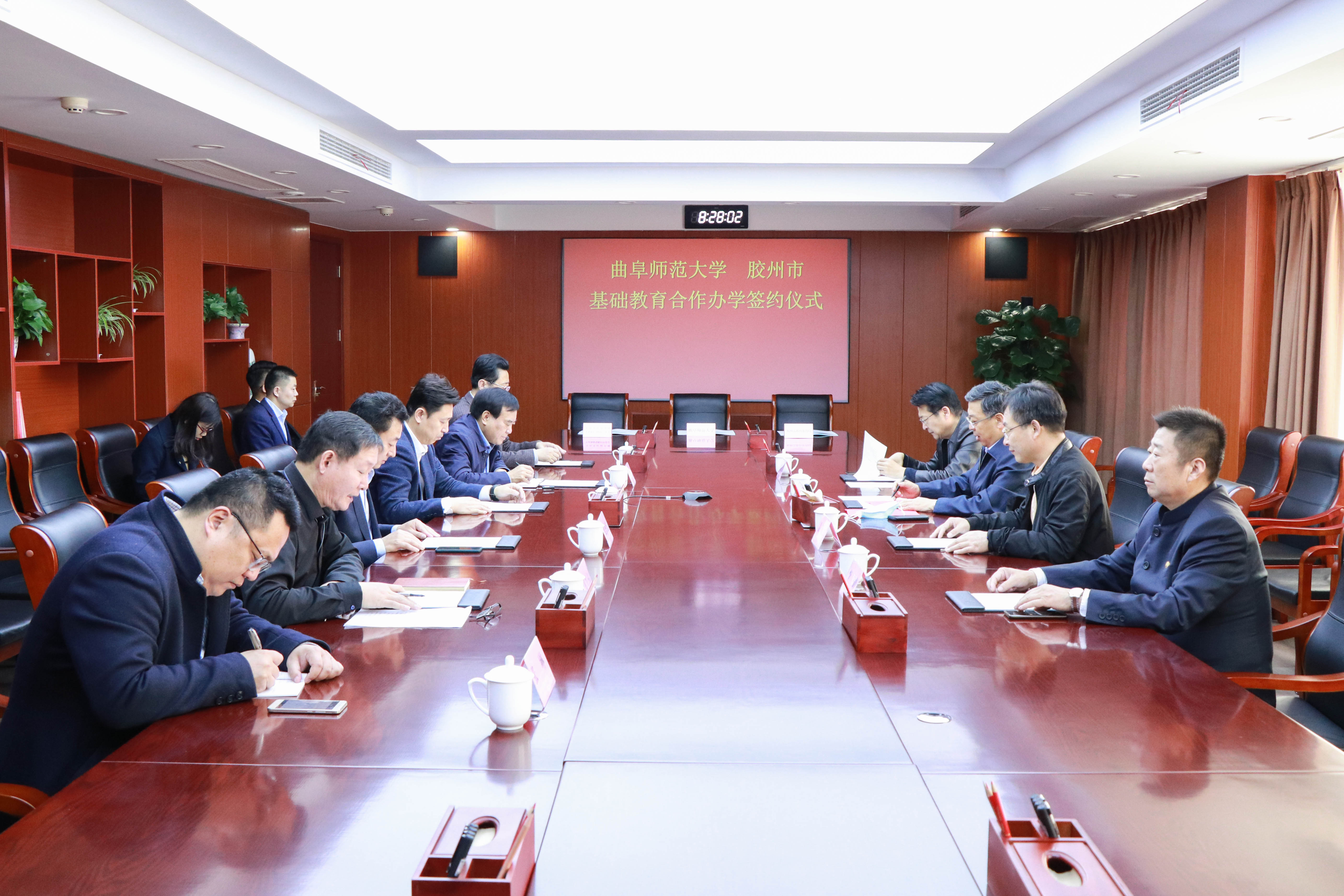 曲阜师大新闻中心讯(记者:李文振) 3月30日上午,米兰官方网站与胶州市基础教育合作办学签约仪式举行。青岛大沽河省级生态旅游度假区党工委书记、管委会主任李储程,曲阜师大党委副书记、校长张洪海,在仪式上致辞。曲阜师大党委常委、副校长冯冲、胶州市教育体育服务中心主任张俊堂与李储程,分别代表米兰官方网站、胶州市教育体育局、青岛大沽河省级生态旅游度假区管理委员会,签署了合作办学协议。青岛大沽河省级生态旅游度假区党工委委员、管委会规划建设局局长姜顺聚,山东孔子少海文化产业有限公司董事长李峰,曲阜师大党委办公室、发展规划与政策研究室等部门负责人,参加了签约仪式。仪式由曲阜师大国内合作处处长孔宪福主持。