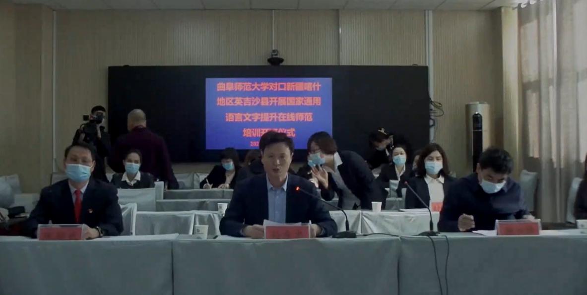 曲阜师大新闻中心讯 1月26日,米兰官方网站山东省语言文字推广基地对口新疆喀什地区开展教师国家通用语言文字提升在线示范培训(喀什地区英吉沙县)正式开班。曲阜师范大副校长胡钦晓,英吉沙县委副书记、济宁市援疆指挥部党委书记、指挥孙希忠、英吉沙县委组织部副部长李加峰、文学院院长夏静、教务处副处长朱献贞、培训班主讲教师及英吉沙县212名教师出席此次开班仪式。