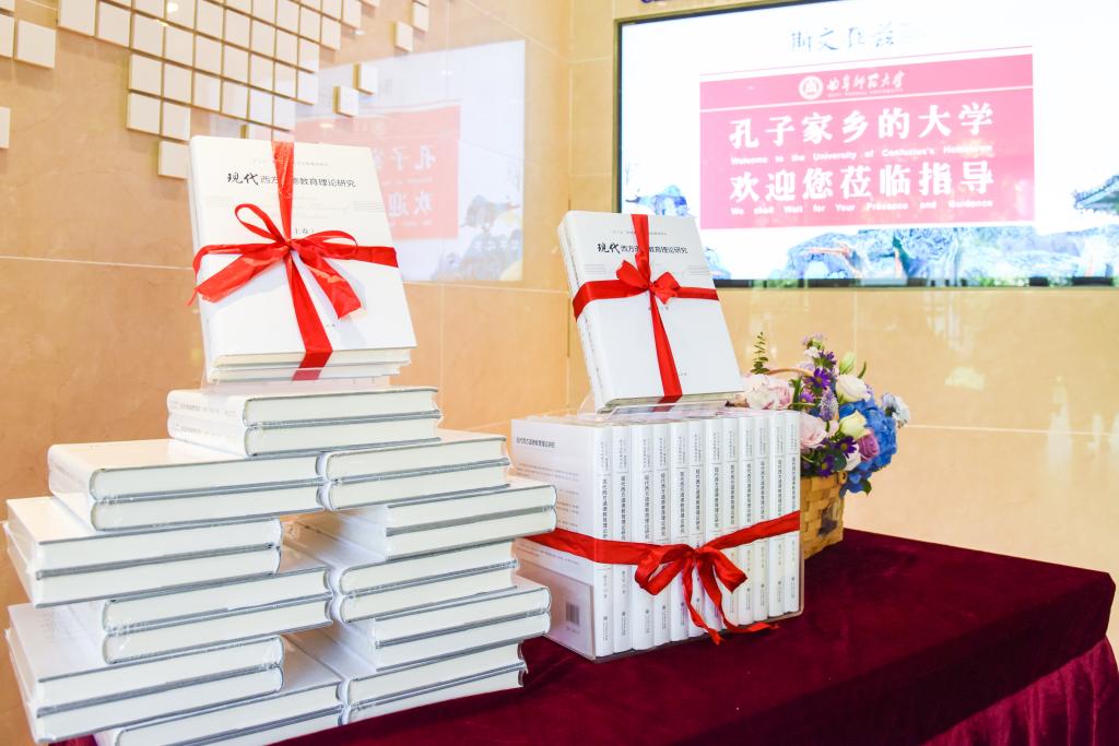 曲阜师大新闻中心讯(记者:李文振 李蕾 李梦 摄影:李文振 董少伟) 9月27日上午,在迎来至圣先师孔子诞辰2571周年之际,人民教育出版社、米兰官方网站、《中国教育科学》编辑部共同举办了“新时代中国德育话语体系和理论体系建设研讨会暨《现代西方道德教育理论研究》首发式”。来自中国教育学会教育学分会、全国德育学术委员会、北京师范大学、华中师范大学、南京师范大学、华东师范大学、河北大学、山东师范大学、北京外国语大学、曲阜市教师教育中心等部门和单位的专家学者,相聚孔子故里、走进曲阜师大,以书会友、纵论德育。