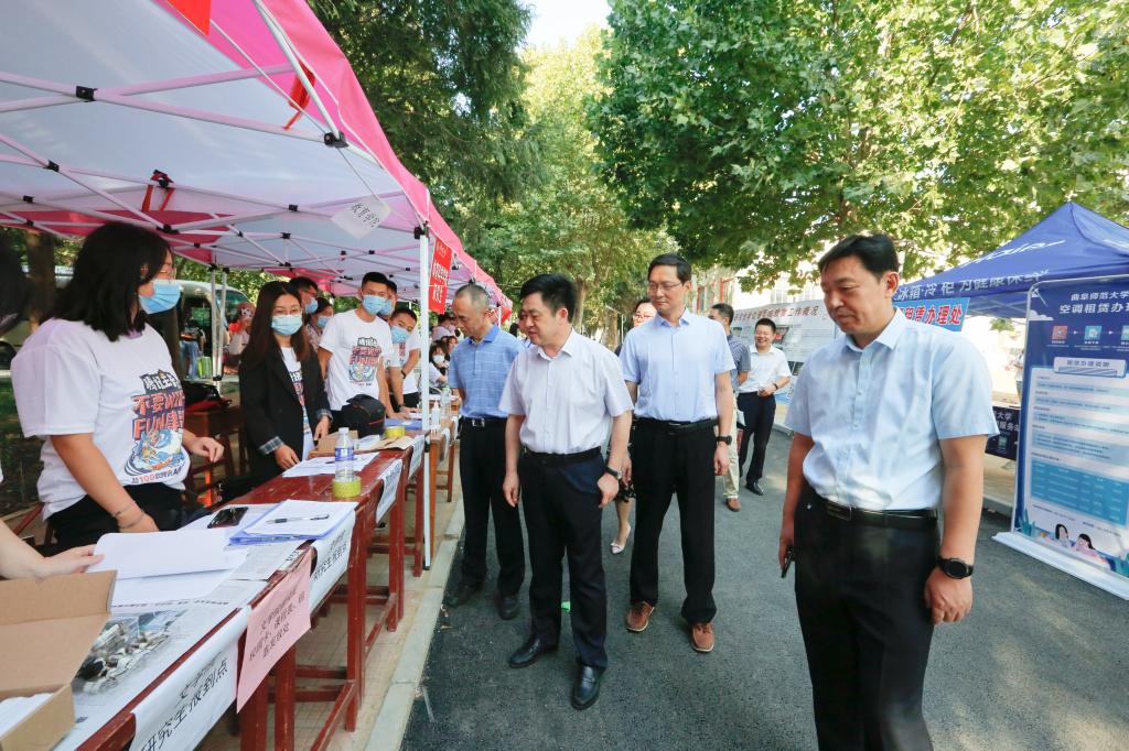 曲阜师大新闻中心讯(记者:刘萌  摄影:刘萌 王超 王增圻)金秋九月,又是一年新生入学报到时,米兰官方网站迎来了满怀激情与梦想的2020级新生。9月19日上午,学校党委书记戚万学,校长张洪海、党委副书记扈庆学、副校长夏云杰、卢国强在相关职能部门负责人陪同下走到两校区迎新现场和宿舍,检查指导迎新工作,看望慰问2020级新同学。