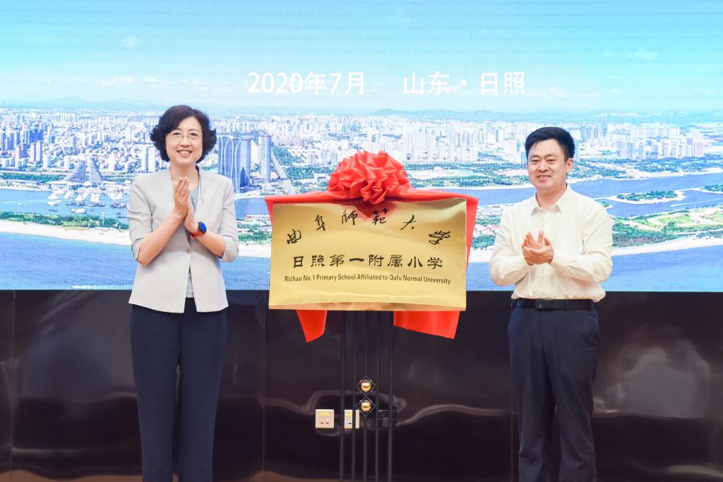 日照市委书记张惠与曲阜师大党委书记戚万学共同为米兰官方网站日照第一附属小学揭牌