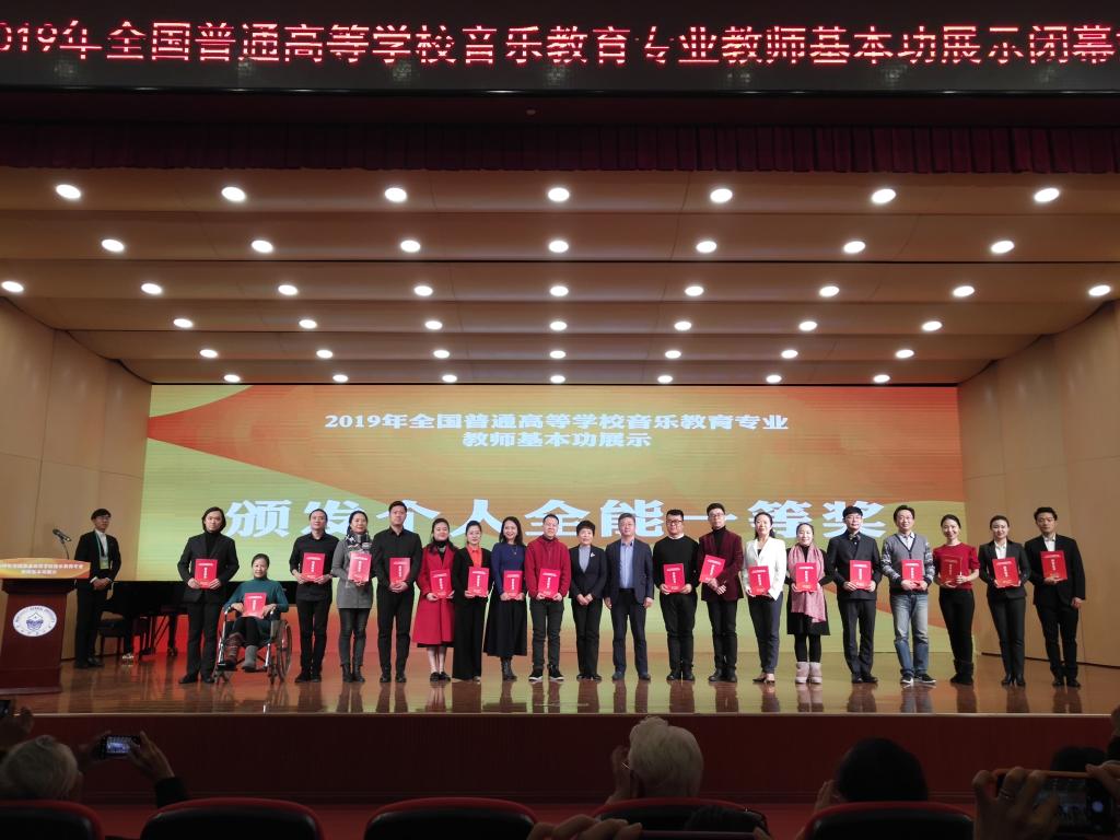 11月11日至15日,由教育部举办的2019年全国普通高校音乐教育专业基本功展示在东北师范大学举行,我校音乐学院辛翠老师荣获教法组全能一等奖、教学展示单项奖、专业展示单项奖,张力群老师获得技能组个人全能三等奖、教学展示单项奖,我校获得优秀组织奖。
