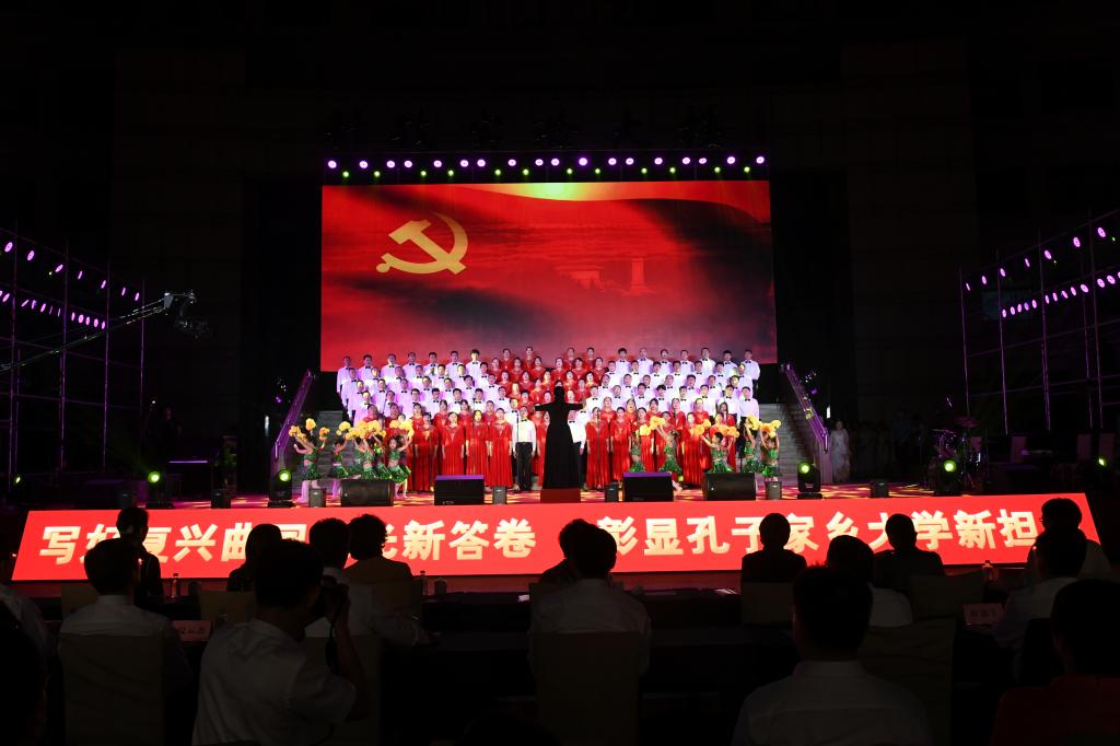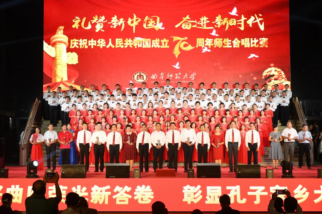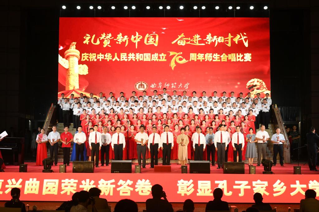 在礼赞新中国的歌声中,曲园人不忘初心,在奏响新时代奋进的旋律中,曲园人牢记使命,必将以加快建设孔子家乡一流大学的新担当、新成就向伟大祖国献礼!