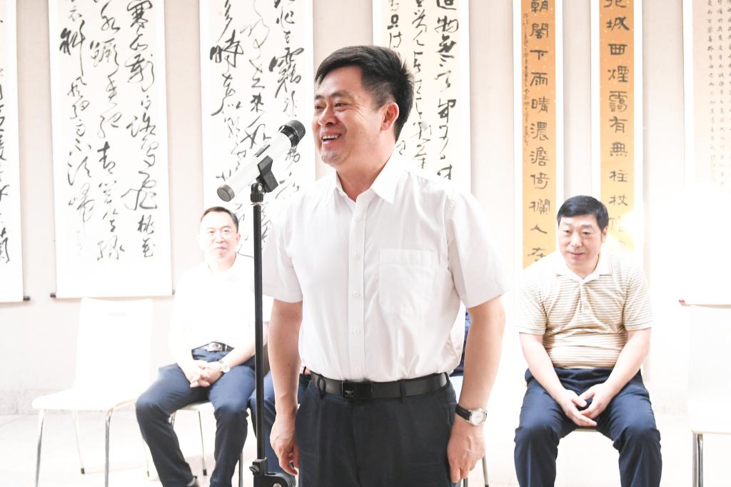 夏云杰向出席此次书画展开幕式的中国书法家协会副主席毛国典先生表示热烈的欢迎;向前来观看此次展览的各位来宾、各位老师和同学们表示诚挚的问候。夏云杰指出,我校书法学院作为全国第一所独立建制的书法学院,多年来始终秉持“传承书法文化艺术”的发展理念,在书法理论研究、教育教学和艺术实践等方面都取得了骄人的成绩,学院办学质量稳步提高,国内声誉日益远播。在2017-2018年度全国本科专业排行榜中,我校书法专业排名全国第二。办学成绩的取得离不开一支高层次、高水准的师资队伍,本次展览展出的众多作品,也充分展现了书法学院教师们良好的艺术素养和过硬的专业水平。希望本次展览能够成为书法学院教师们展示成果、学习交流的平台,希望全体教师继续承载新时代文化的责任担当,用丹青翰墨挥洒歌颂党、赞美祖国的壮美情怀,为书法艺术事业大发展、大繁荣做出新的贡献。
