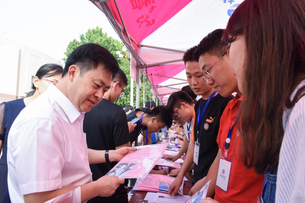 9月6日、7日,学校党委书记戚万学、校长张洪海、党委副书记扈庆学、副校长杨冰、冯冲,分别深入两校区迎新现场,视察指导迎新工作并看望慰问2019级新同学和家长。学校办公室、日照校区管理办公室、学生工作处、教务处、研究生处、团委等部门负责人参加活动。
