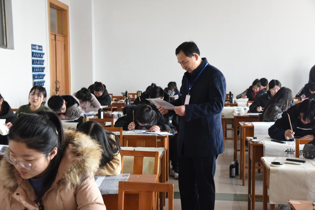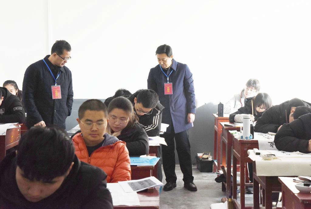 2月23日上午,省教育招生考试院研究员杨涛、副研究员张新元来我校巡视2019年艺术类专业招生考试工作,在校长张洪海、副校长辛杰陪同下,巡视组来到书法学专业考试现场实地检查指导。教务处负责人就我校艺术类专业招生考试工作的总体情况做了汇报。