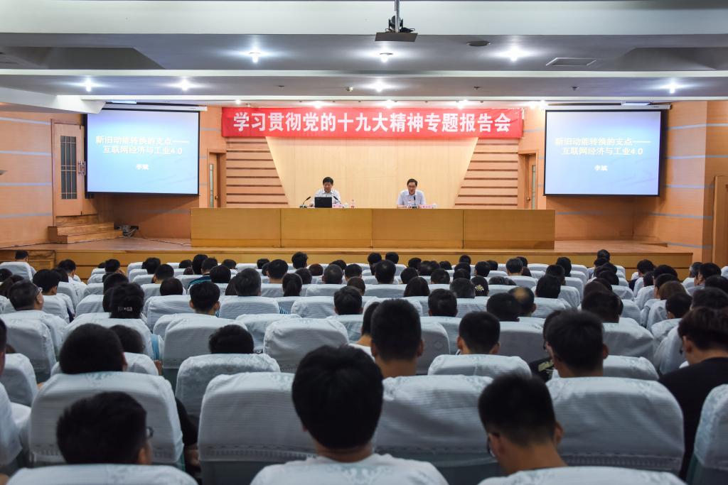 5月18日下午,第十一届山东省政协常委、港澳台侨和外事委员会副主任、山东省智能制造联盟专家委员会副主任委员、原山东省驻上海办事处主任李斌做客我校明德讲堂,作了题为“新旧动能转换的支点——互联网经济与工业4.0”的专题报告。学校领导戚万学、扈庆学、夏云杰,全校科级以上干部、党支部书记、全体辅导员参加报告会。报告会由副校长夏云杰主持。