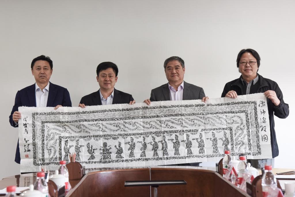 座谈结束后,马东骅、王力克一行向我校正在建设的中国教师博物馆捐赠了《儒师讲经图》汉画拓片,并在学校领导陪同下参观了我校校园和校史展览馆。
