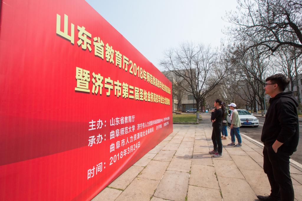 线上线下平台双轮驱动,再启高校学子就业春潮。3月24日,我校成功举办全省首场2018年师范类高校毕业生供需见面会暨济宁市第三届圣地金桥高校毕业生大型招聘会,省内外470家用人单位齐聚孔子故里招贤纳才,提供就业岗位近1.6万个,吸引了校内外约1.5万名高校毕业生前来应聘。