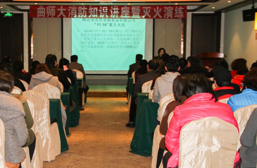 为落实学校“消防宣传月”工作部署,11月16日下午,我校联合日照市消防支队举办消防知识讲座及消防演练活动,副校长扈庆学、副校长辛杰、日照市消防支队上校陈长红出席了活动;日照市消防支队官兵,日照校区管理办公室、保卫处等有关单位负责人,各单位消防安全责任人、管理人、消防志愿者、保安及师生代表等一百余人参加了活动。