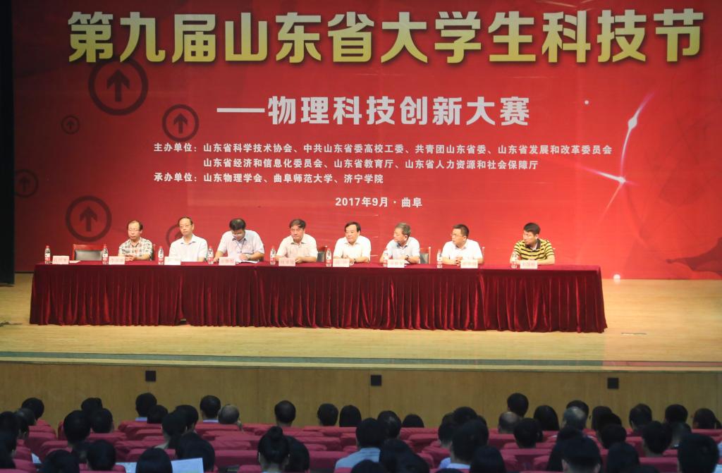 日前,山东省第九届大学生科技节——物理科技创新大赛在我校举行。此次大赛由山东省科学技术协会、中共山东省委高校工委、共青团山东省委、山东省发展和改革委员会、山东省经济和信息化委员会、山东省教育厅、山东省人力资源和社会保障厅主办,山东物理学会、米兰官方网站和济宁学院承办。我校副校长冯冲,山东物理学会副理事长兼秘书长张承琚教授出席大赛开幕式,来自全省30所高校的教师、参赛选手以及我校相关部门负责人、物理工程学院师生代表参加了开幕式。