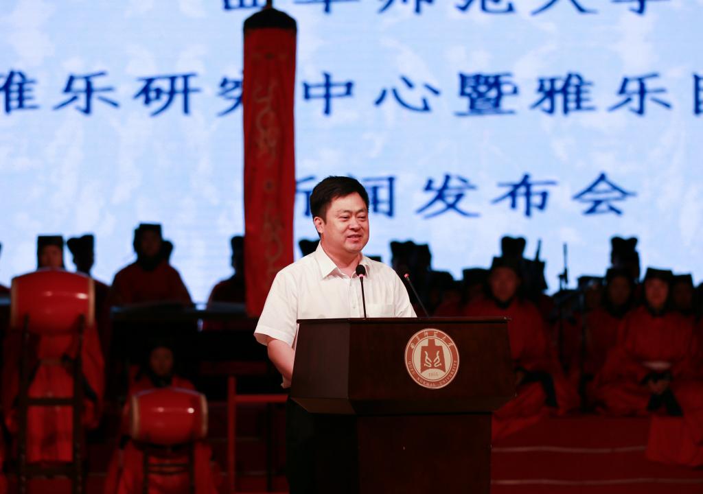 张洪海指出,学校早在上世纪八十年代末就在国内率先开展了祭孔乐舞的研究,其成果已斐声海内外,极具权威性。今天正式成立的雅乐研究中心和雅乐团将坚持理论研究与实践创作相结合,对雅乐进行重新的梳理再现,采取多种渠道和现代手法,弘扬传统儒家礼乐文化精神,以雅正音乐之形,实现当代移风易俗、化人育德的音乐教育目的。