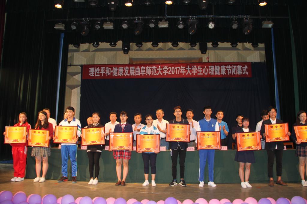 闭幕式上宣读了2017年大学生心理健康节系列活动获奖名单。日照校区11个学院进行了精彩的心灵手语操表演,他们以“手语”的表达方式,通过跳一跳、动一动等肢体动作,展现大学生积极向上的风貌,达到非语言的沟通互动,让心灵在双手中舞动,让关爱于指尖处绽放。曲阜校区各学院心理健康部将心理健康节期间举办的主题鲜明、意义深刻的活动做了精彩展示,突显了活动特色和风采。