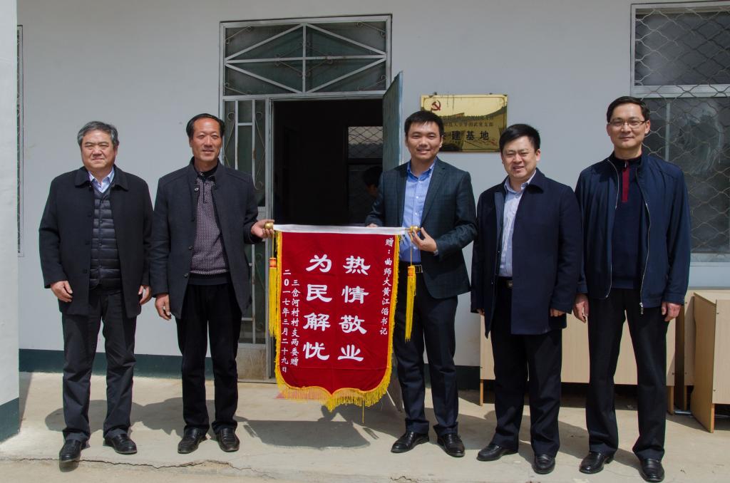欢送现场,戚万学与村里的干部群众亲切交流,并代表学校向石门村、南陈村、三岔河村分别赠送了“携手奔小康,共圆中国梦”的书法作品。戚万学表示,第一书记驻村帮扶工作能够赢得老百姓的口碑,是对学校和第一书记最好的认可。他对泗水县县委县政府和当地干部群众两年来给予三位第一书记的关心和支持表示感谢。戚万学说,学校和三位第一书记与当地干部群众结下的深厚情谊将会一直保持下去,彼此之间以后要继续多走动、常联系,学校也将充分利用自身的智力资源和人才资源为村子的建设发展提供支持。