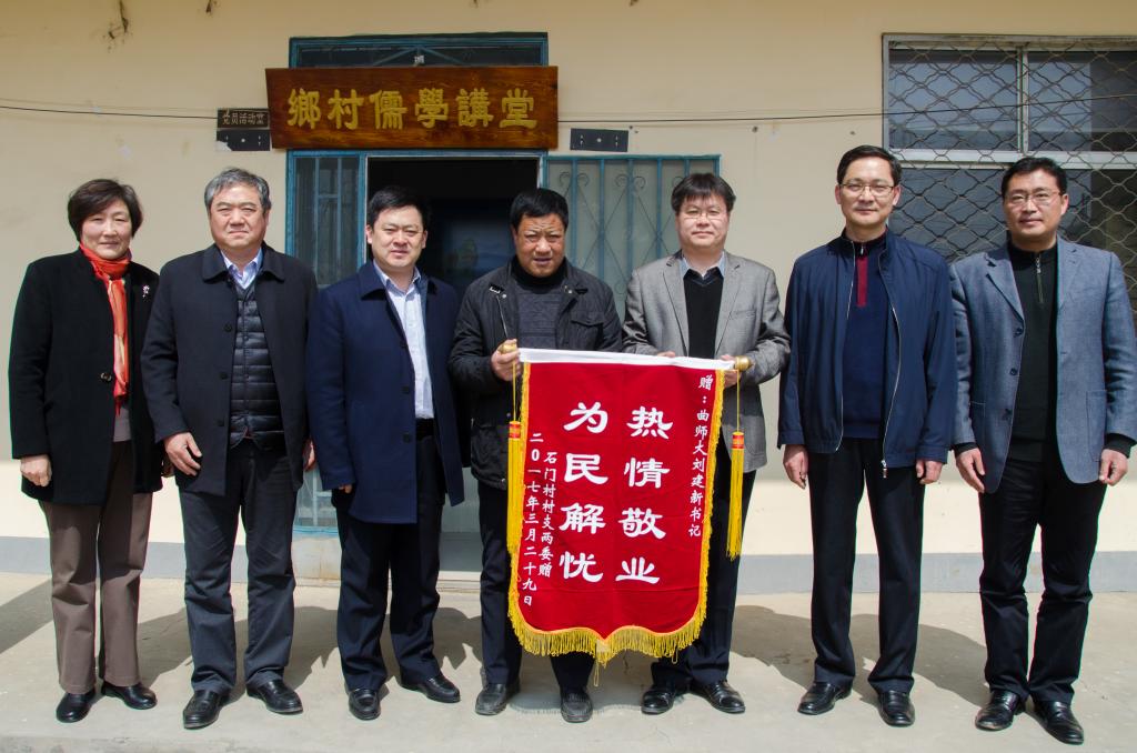 3月29日,我校第二轮省派第一书记任职期满,学校党委书记戚万学、党委副书记马东骅、副校长夏云杰赶赴泗水县泗张镇石门村、南陈村、三岔河村,迎接刘建新、季中、黄江滔三位第一书记载誉而归,泗水县县委书记谢成海与当地干部群众一起欢送三位第一书记返校。