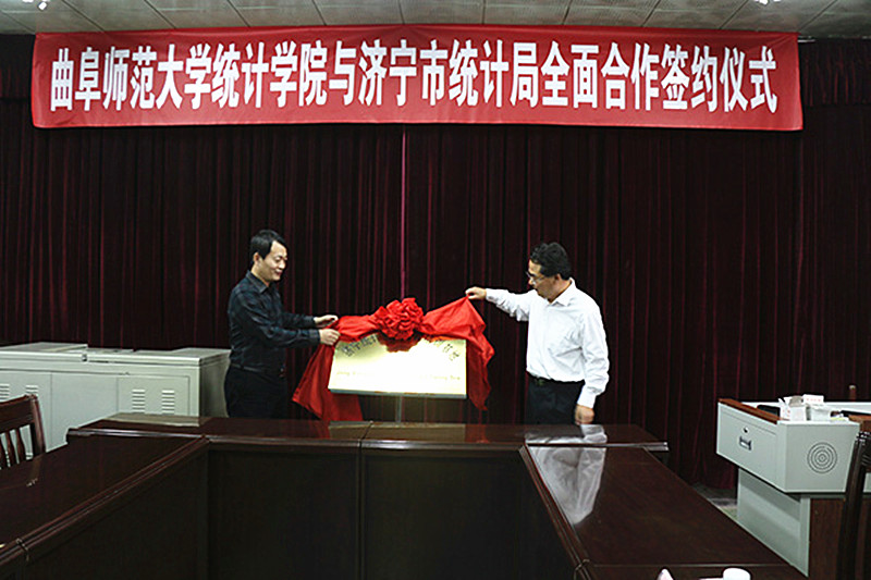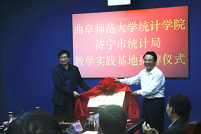 签订协议前,双方为“济宁统计系统教育培训基地”、“米兰官方网站教学实习基地”揭牌。