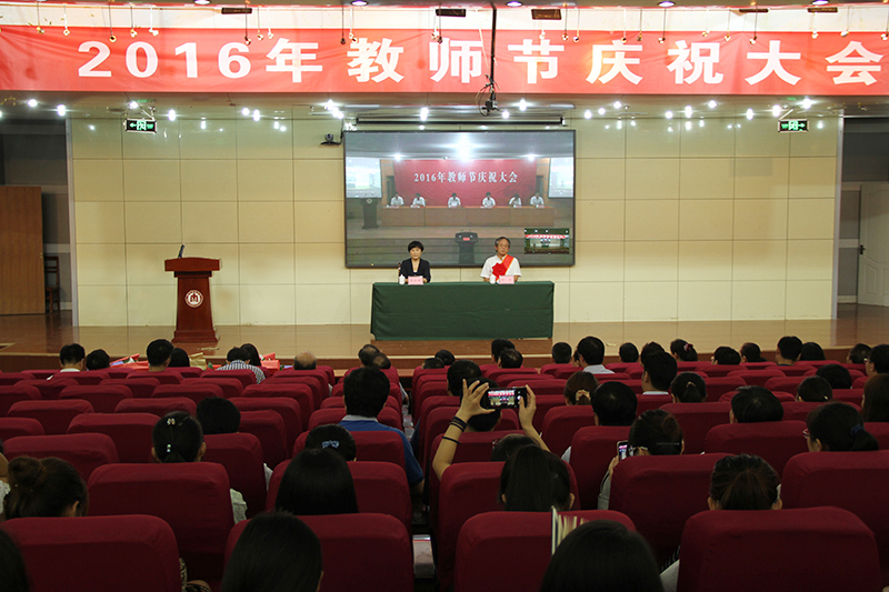 弘文励教又一载,尊师明道永相传。9月9日上午,在第32个教师节到来之际,我校隆重举行2016年教师节庆祝大会。学校领导荆兆勋、戚万学、马东骅、康淑敏、王继锁、张洪海、郭辰夫、杨冰出席,学校各单位主要负责人、教师代表、离退休教师代表、学生代表参加了庆祝大会。大会由党委书记荆兆勋主持。