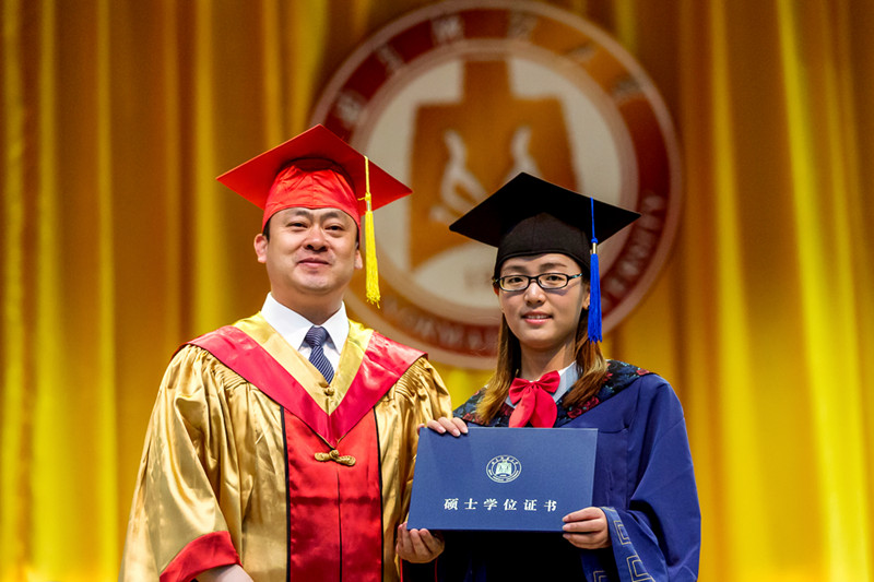 戚万学为毕业生代表行拨穗礼、颁发学位证书,并合影留念。在嘹亮的校歌《犁牛之子歌》中,我校2016届学生毕业典礼暨学位授予仪式圆满结束。9298名毕业生将带着曲园的浓浓祝福和殷切希望踏上人生新的征程,开创更加辉煌的明天!