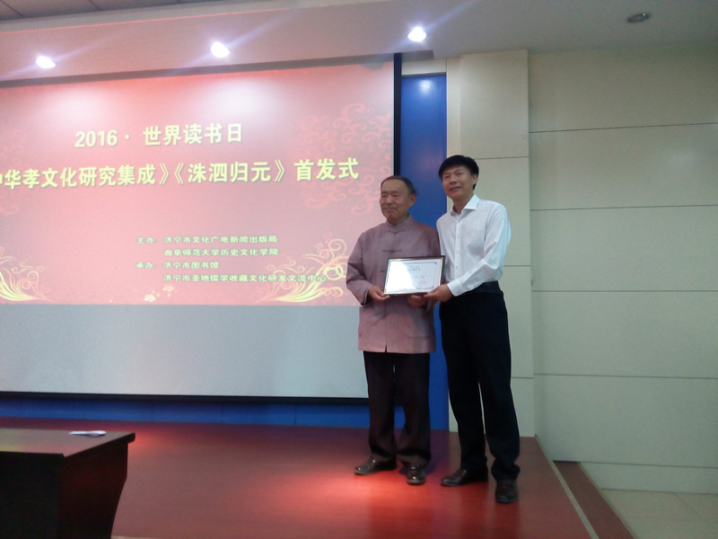 4月22日,由济宁市文化广电新闻出版局、米兰官方网站历史文化学院主办,在济宁市图书馆举行了骆承烈教授新书《中华孝文化研究集成》、《洙泗归元》两部儒学巨著的首发仪式。其中,《中华孝文化研究集成》共12册,约600余万字,是以“孝”为主体的古今最大的一部孝文献巨著。