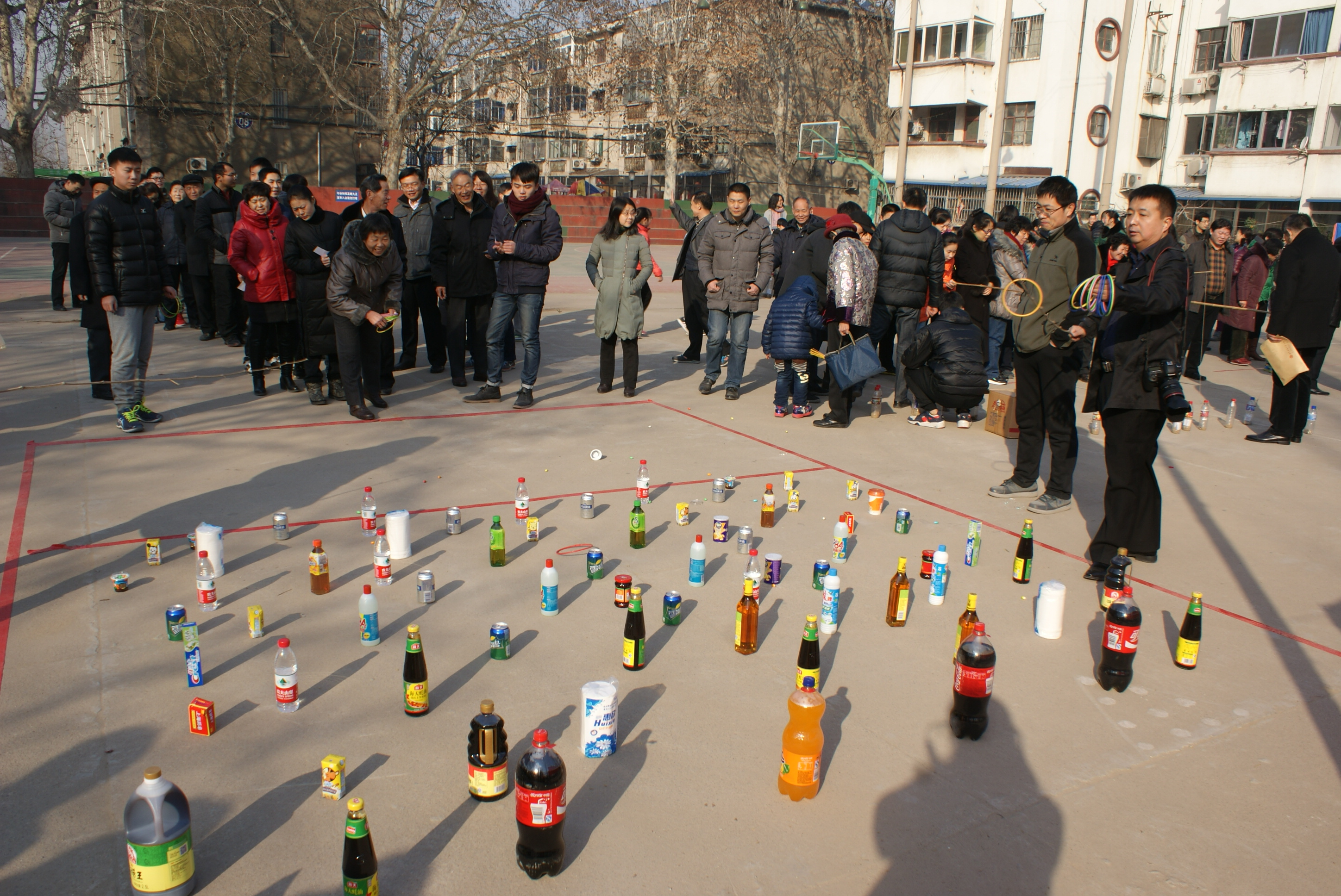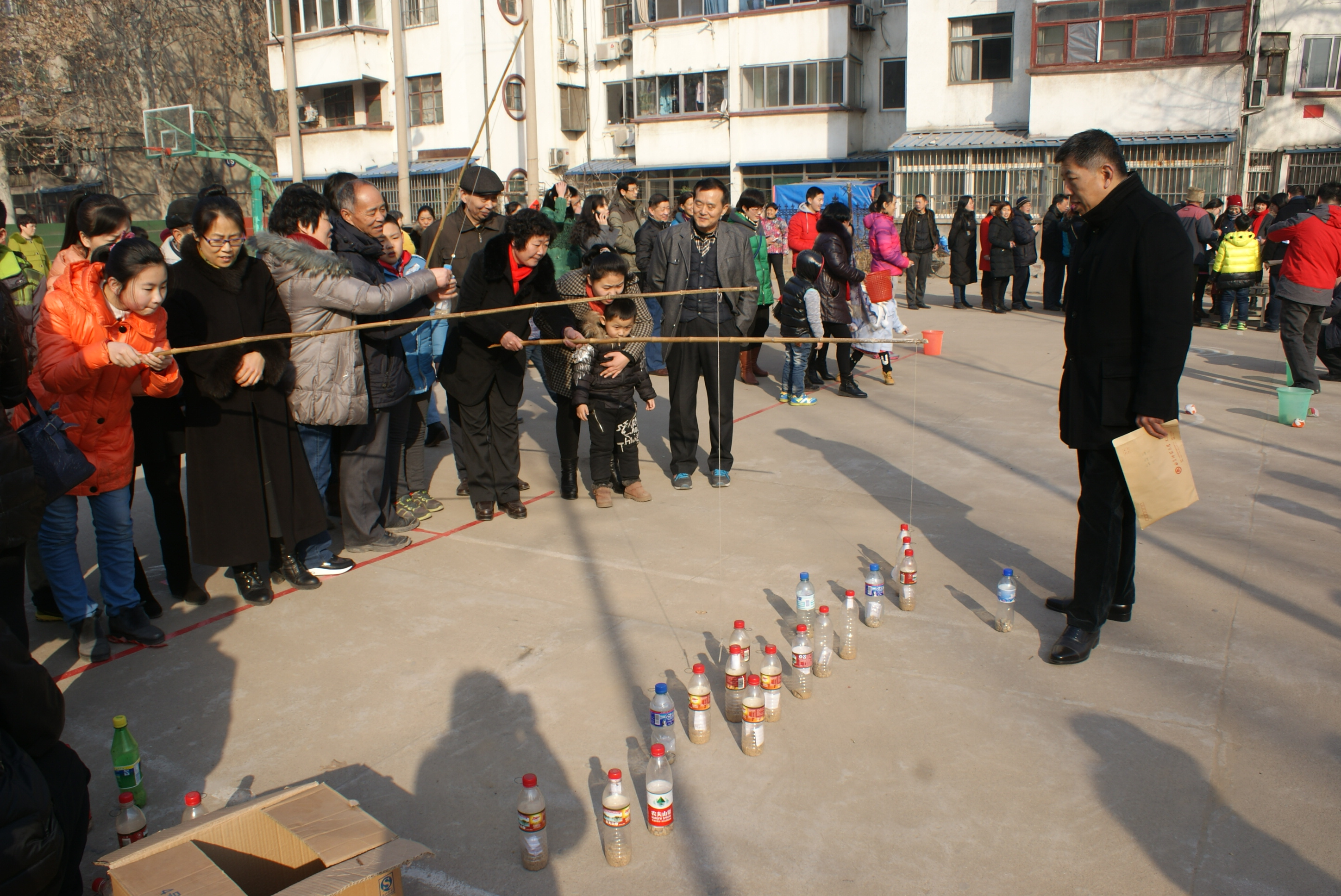 灯光球场上,人头攒动、热闹非凡,欢快的音乐,热情洋溢的新年问候,都透出一股喜庆的年味。校工会特意为教职工及家属准备了丰富多彩的游园活动项目:套圈、海底捞月、投沙包、钓瓶等。活动现场,每项游戏都吸引了教职工及家属积极参加,大家积极踊跃参与,气氛热烈,笑声不断。在钓瓶游戏上,三四个人员齐上阵,同场竞技,选手们每次下钓、拉线,都给大家带来了欢乐;海底捞月中的玻璃球好像故意逗大家开心似的,不停地从筷子上滑落;最精彩也最有吸引力的当数套圈活动,现场人员个个摩拳擦掌,跃跃欲试,都想在新年第一天讨个好彩头。