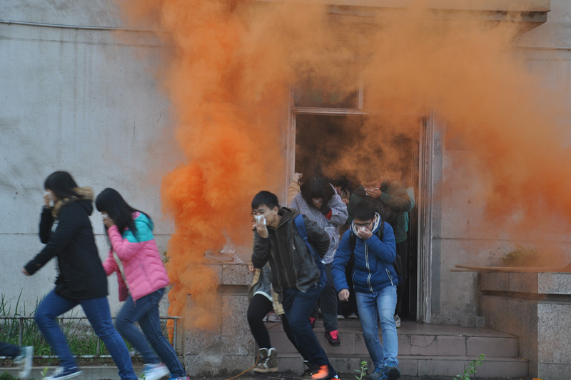 演练分为疏散逃生、抢险救援破除障碍物表演、学习使用消防器材、灭火演练等环节。下午3点半,位于学生第六公寓楼的虚拟火场浓烟四起,警报响起。楼内工作人员按照消防演习方案疏散学生,以确保同学们从防火通道迅速撤离。曲阜市公安消防大队副大队长邵鲁科现场讲解灭火器的使用方法师生们争相上场,亲身体验灭火操作,在工作人员的指导下,师生们成功将火扑灭。