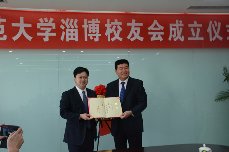 淄博校友会新任会长王培亮在讲话中表示,母校是校友永远的精神家园和不断进取的力量源泉,他一定不辜负母校和校友们的信任和重托,秉承母校“学而不厌,诲人不倦”的校训,尽全力,有所为,为校友们和母校的共同发展做出积极的贡献。