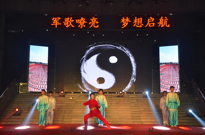 9月24日晚,以“军歌嘹亮,梦想起航”为主题的2015年军训合唱汇演暨迎新文艺晚会在孔子文化广场激情上演,副校长马东骅、省委高校工委宣教处副处长王意茹出席晚会。组织部、宣传部、学生工作处(武装部)、后勤管理处、团委等单位负责人及各学院分管学生工作的副书记、团总支书记、辅导员同2015级全体新生共同观看了晚会。