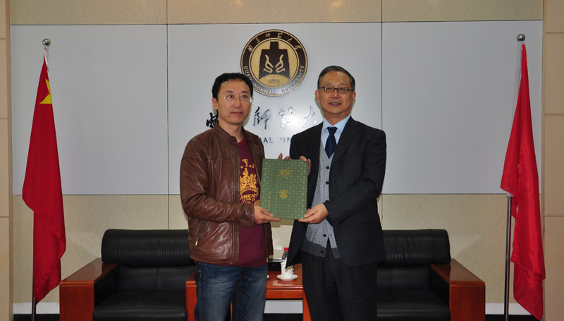 10月31日下午,知名画家李福林先生受聘我校兼职教授,并向我校图书馆和美术学院捐赠了个人画集和绘画作品。美术学院院长李善阳向李福林先生颁发了兼职教授聘书,图书馆副馆长王东波向李福林先生颁发了作品收藏证书。