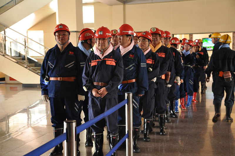 仪式后,青年教师参观了煤矿高度指挥中心、宣传长廊,了解矿区文化建设。并换上矿工服、戴上安全帽,乘坐罐笼下到600米深的井巷,深入到井下作业现场进行实地体验,实际感受现代煤矿开采过程。