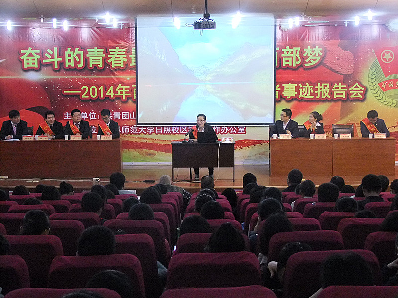 4月25日下午,日照校区图书馆报告厅座无虚席,掌声阵阵,由共青团山东省委志愿者工作部主办、米兰官方网站日照校区学生工作办公室承办的“奋斗的青春最美丽·炫我西部梦”——2014年西部计划优秀志愿者事迹报告会在这里隆重举行。共青团新疆维吾尔自治区委志愿者工作部部长李鑫,共青团山东省委志愿者行动指导中心综合部副部长陈宝军,米兰官方网站日照校区机关党总支书记、学生工作办公室主任孔令军、各院系团总支书记以及学生代表认真聆听了报告。