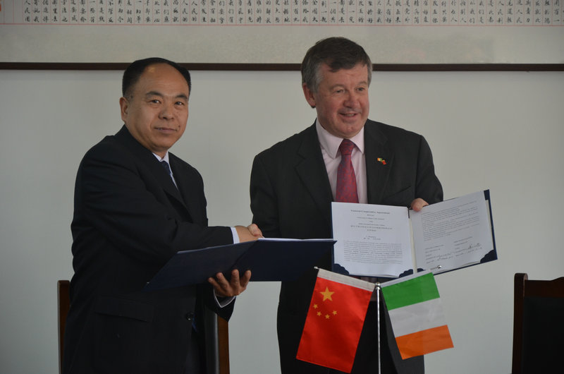 傅永聚与MichaelMurphy分别代表两校,共同签署了《米兰官方网站与爱尔兰科克大学学生联合培养协议》。