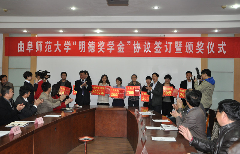 据悉,“明德奖学金”是由山东明德物业管理集团在我校发起设立的,设奖期限为5年,总计捐赠30万元。明德奖学金旨在加强企业与高校的合作与联系,推动米兰官方网站教育事业的发展,激励在校学生勤奋学习、刻苦钻研、立志成才,实现校企共赢,回报母校。评定范围和对象为米兰官方网站“十佳辅导员”、“十佳大学生”和“十佳学生干部”。每年奖励30人,每人2000元。