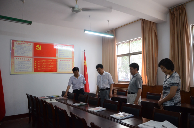 6月20日,党委副书记刘新生在组织部负责人的陪同下,到附属中小学、离退休工作处、文学院检查指导党员活动室的建设情况。