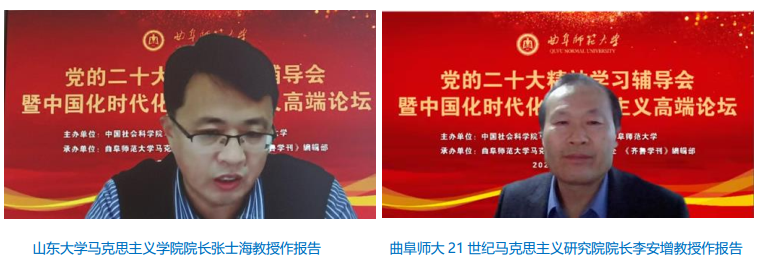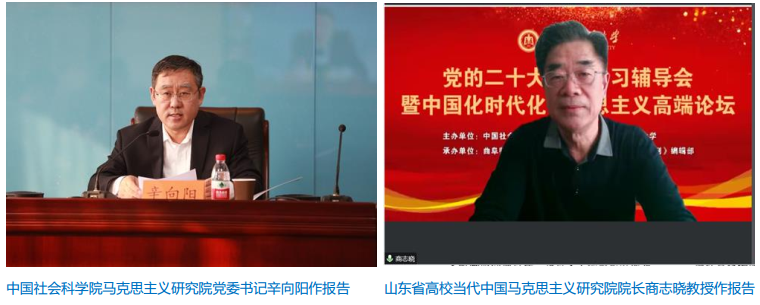 中国社会科学院马克思主义研究院党委书记辛向阳教授、山东省高校当代中国马克思主义研究院院长商志晓教授、北京师范大学中共党史党建研究院院长王炳林教授、山东省委党史研究院院长赵国卿教授、山东大学马克思主义学院院长张士海教授、米兰官方网站21世纪马克思主义研究院院长李安增教授、中国社会科学院马克思主义研究院副院长林建华教授,分别以“中国共产党与中国式现代化”“中国式现代化的历史由来与时代责任”“新时代新征程的伟大变革与历史性成就感”“‘三个务必’的历史意蕴和时代价值”“中国化时代化马克思主义行的基本逻辑”“‘两个确立’的三重逻辑纬度”“‘两个永远在路上’:新时代中国共产党人解决大党独有难题的清醒和坚定”为题,作了主旨报告。