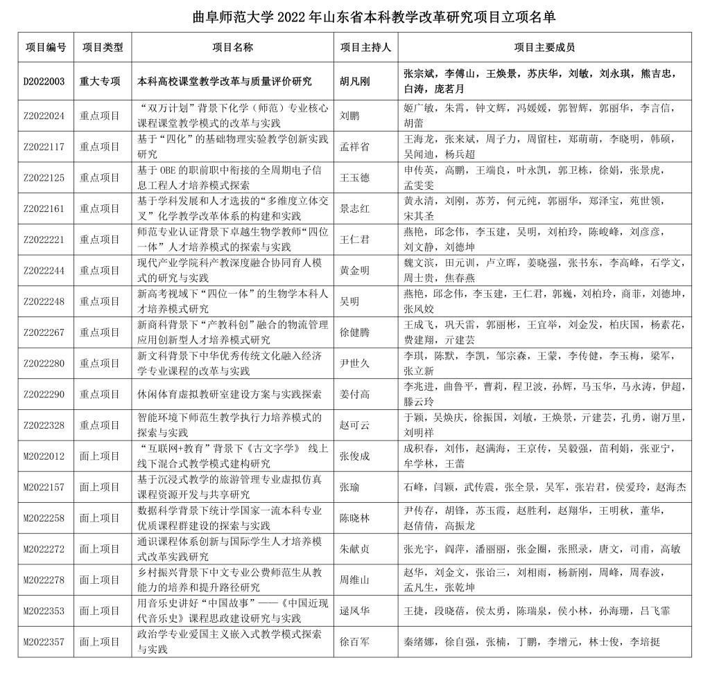 曲阜师大获批19项2022年山东省本科教学改革研究项目